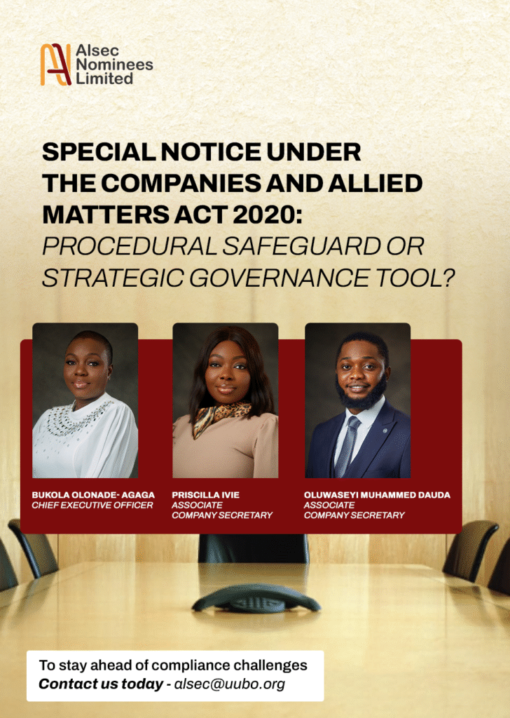 Alsec Nominees Limited is pleased to announce the retirement of Mrs. Oyindamola Ehiwere as Chief Executive Officer, effective Tuesday, 4 November 2025. Mrs. Ehiwere has been an invaluable asset to Alsec Nominees Limited, providing exemplary leadership and dedication throughout her tenure. Under her stewardship, the company has grown significantly and maintained its reputation as a […]